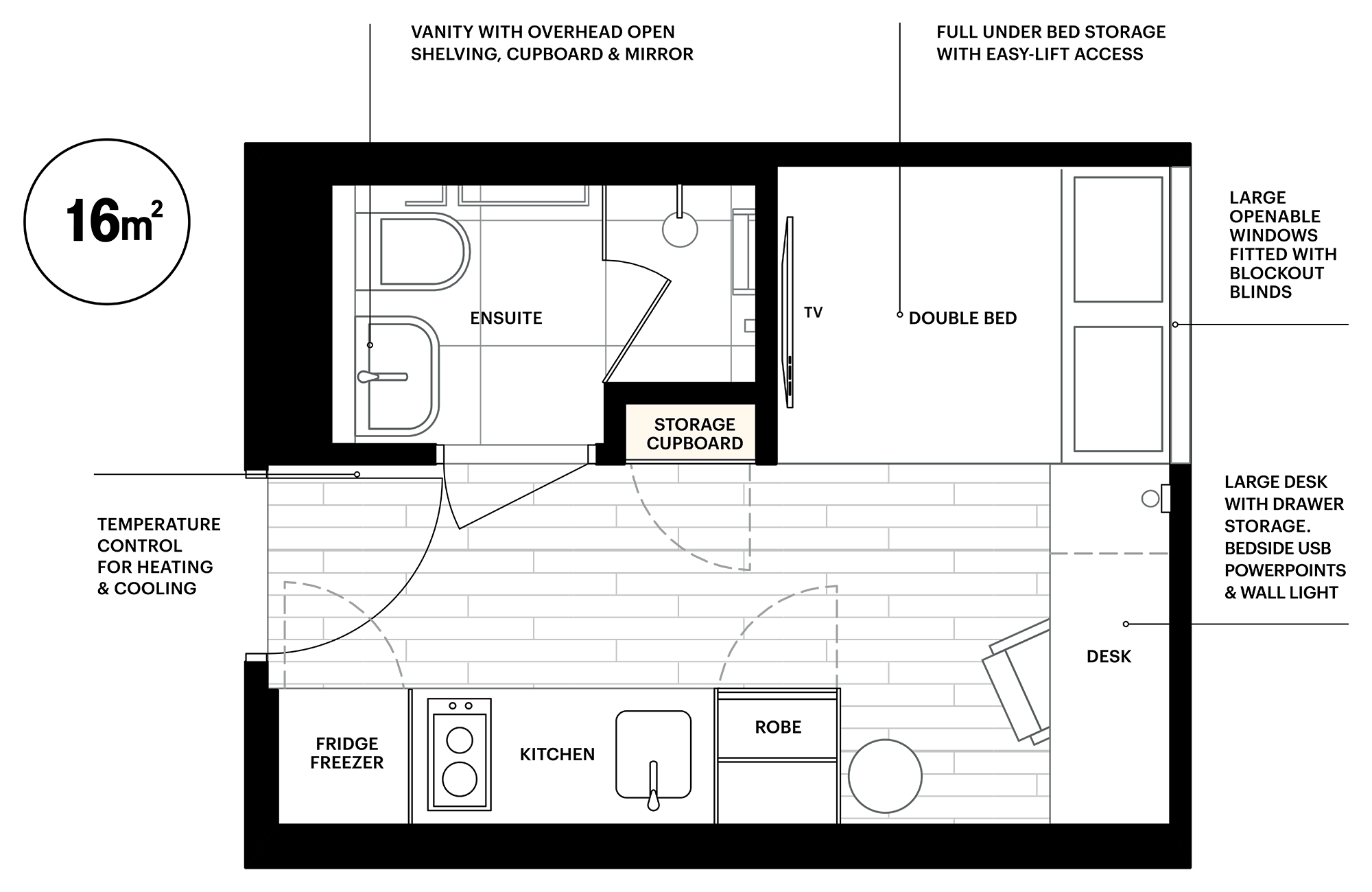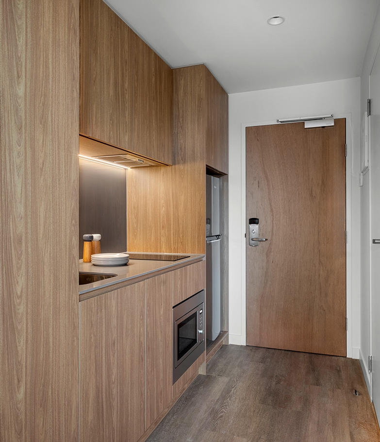 The private, self-contained Standard Studio features a comfy double bed, a stylish kitchen with modern appliances and an ensuite bathroom. It also includes desk area, TV, unlimited Wifi and air conditioning.