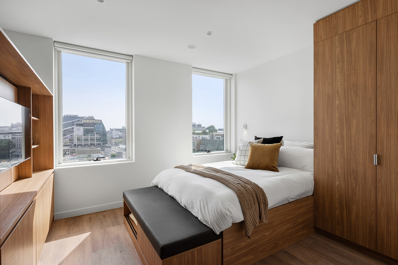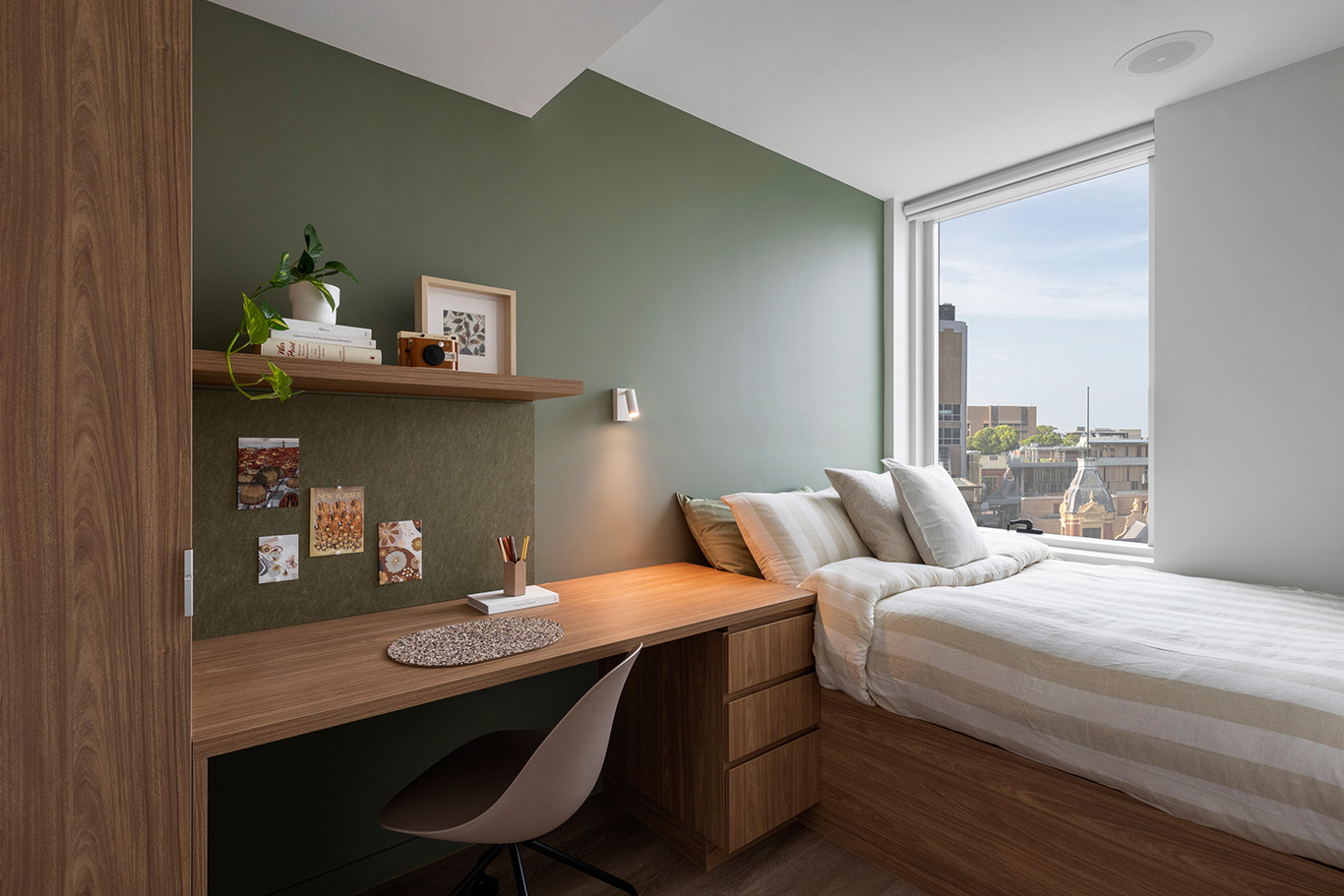 Suite student accommodation offers extra space, style, privacy, and comfort. Designed with larger layouts and scenic outlooks, they create a quiet retreat for study and rest. Perfect for students who enjoy privacy with a touch of premium living.