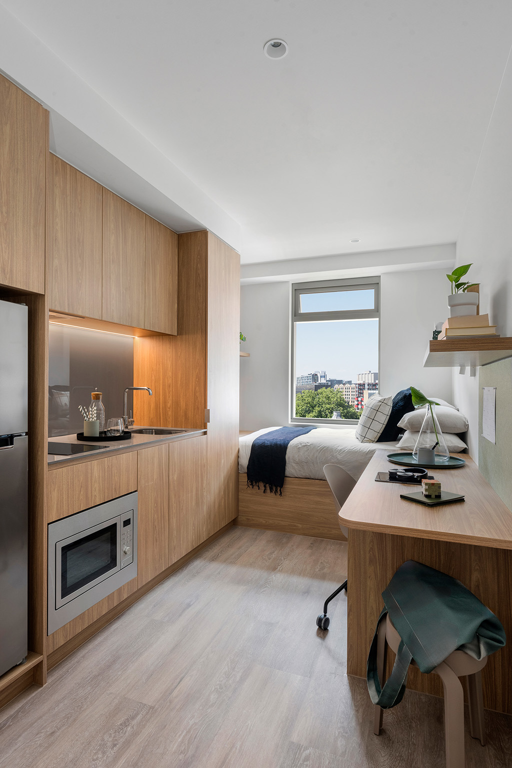 All Journal properties offer all-inclusive student accommodation, meaning every room comes fully furnished and ready to live in. You’ll have a bed, study desk, storage, and kitchen essentials already provided, so there’s no need to buy or move large furniture when you arrive in Melbourne.